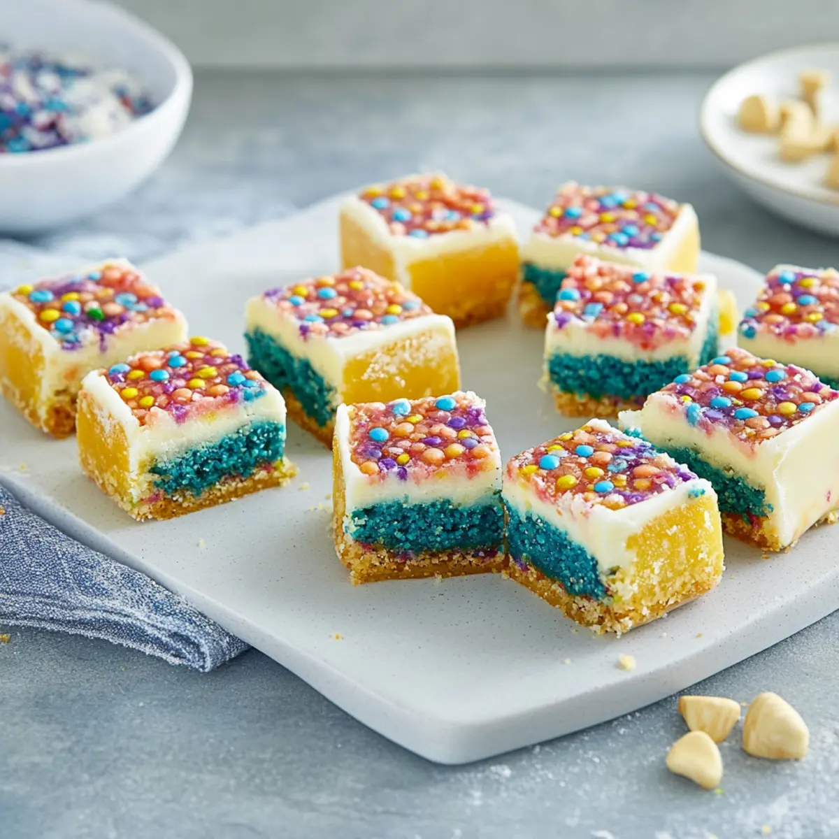 Picture layers of rainbow hues, each bite bursting with flavor and a delightful chewiness! This no-bake wonder is not just a feast for the eyes but a surefire hit at birthday gatherings or school events. Kids and adults alike can’t resist its charm, and trust me, it's a breeze to make. So roll up your sleeves and let's dive into a simple yet stunning dessert that will brighten up your kitchen and satisfy your sweet cravings!