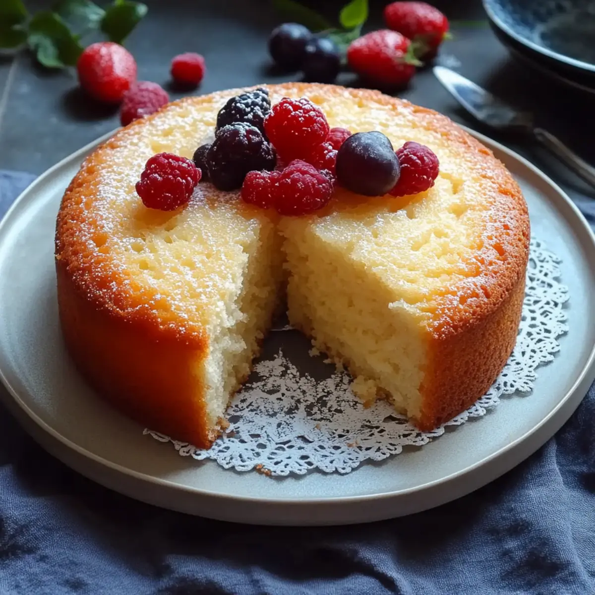 Fresh Berries: Vibrant strawberries or blueberries add a juicy burst that complements the cake’s light texture beautifully.