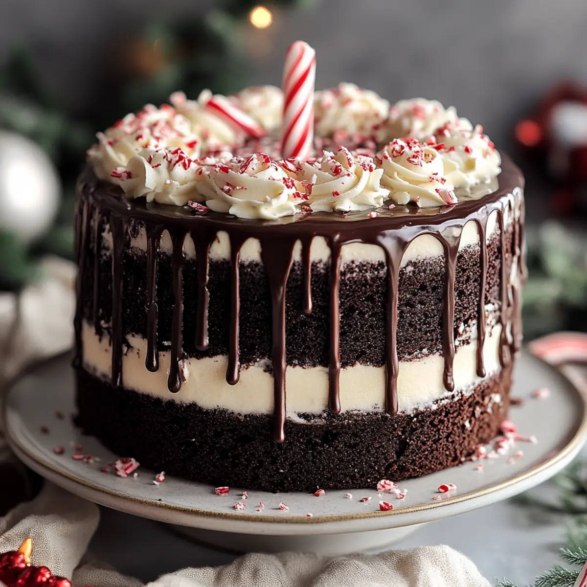 Indulgence awaits! This stunning cake is a festive masterpiece that will delight any holiday gathering. Rich flavors of dark chocolate and peppermint offer a delightful twist on traditional treats. Easy to make, even novice bakers will find joy in the straightforward process. Gorgeous presentation with its glossy ganache drip makes it the perfect centerpiece. Plus, the aroma of warm chocolate and peppermint in your kitchen will have everyone eagerly awaiting a slice. Elevate your celebrations with this festive dessert that embodies the magic of the season!